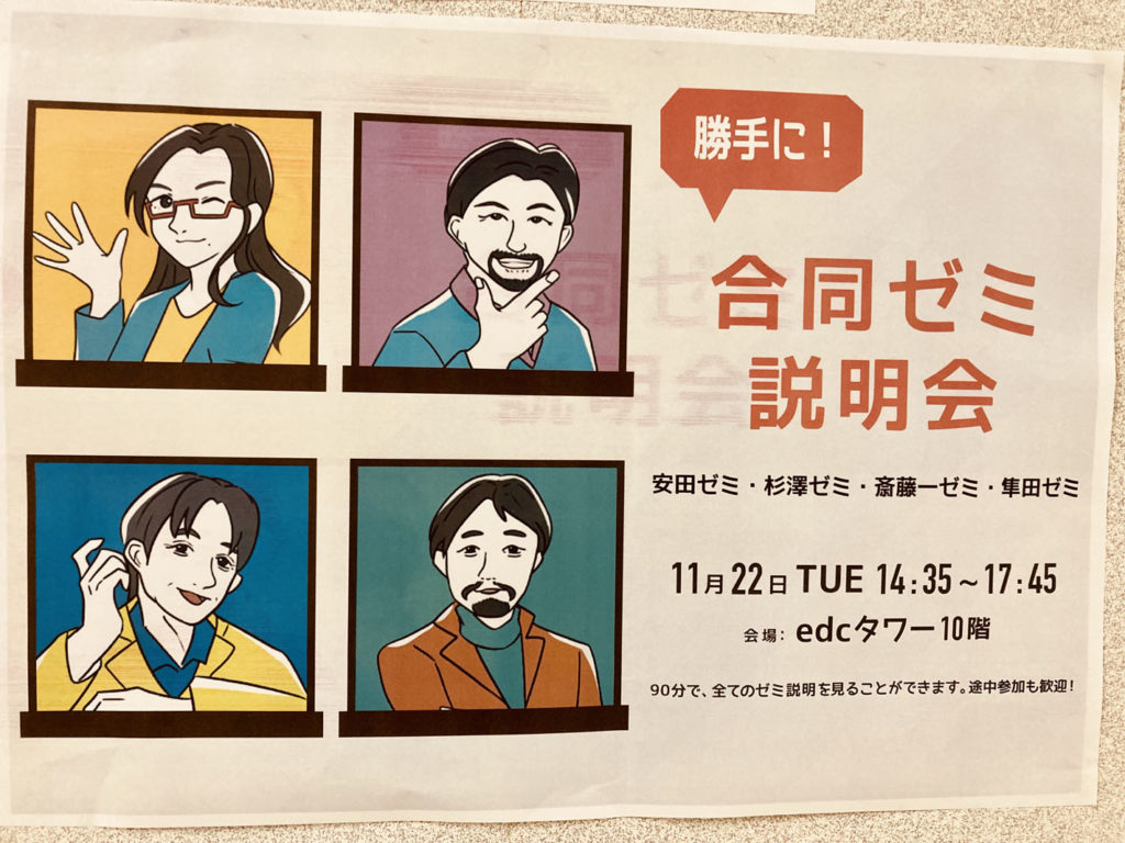 安田ゼミ,杉澤ゼミ,隼田ゼミとの合同ゼミ説明会(学生主催)に参加します。
