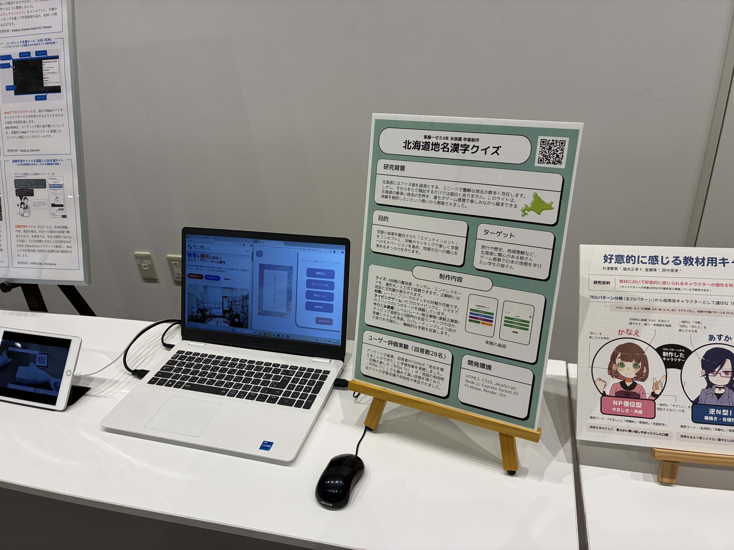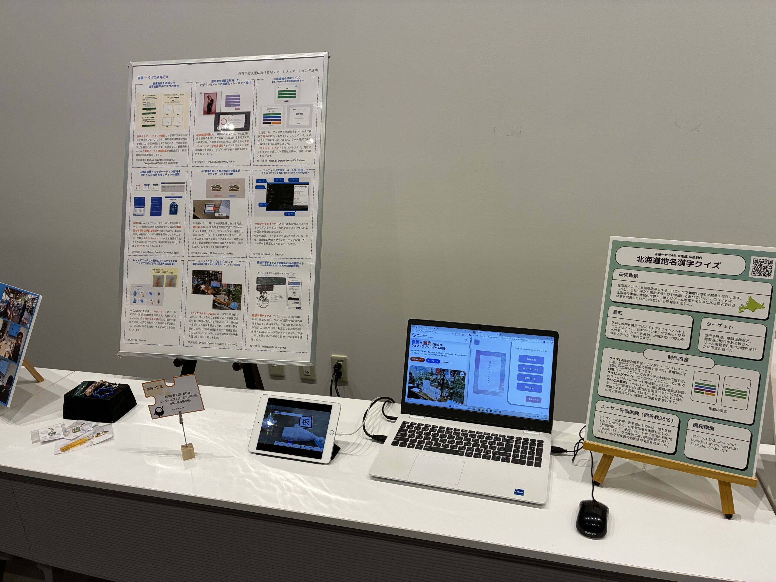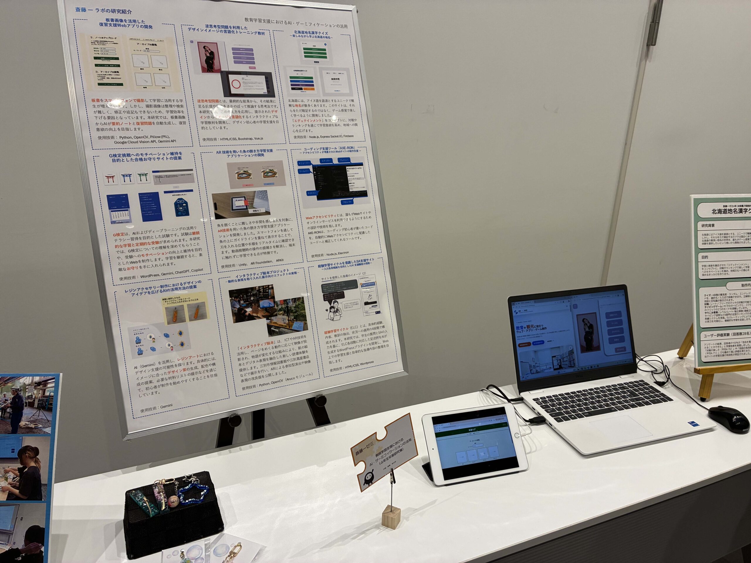 地域・社会・教育といった現場から生まれる問いを出発点に、デザインやWeb技術を活用して取り組んできた研究成果を紹介しました。あわせて、研究活動の実践的な成果として、学生による卒業研究・制作プロジェクト・企画提案などの作品も展示しました。