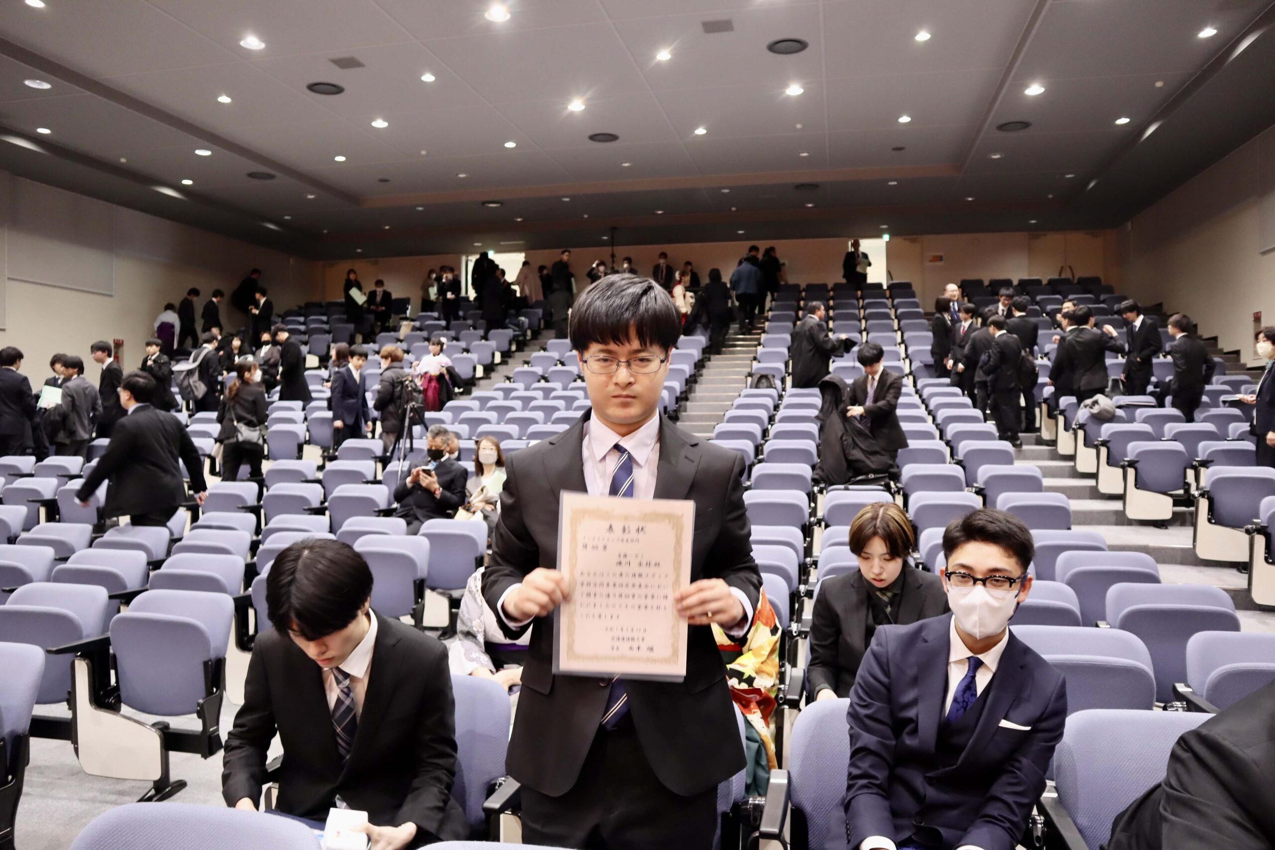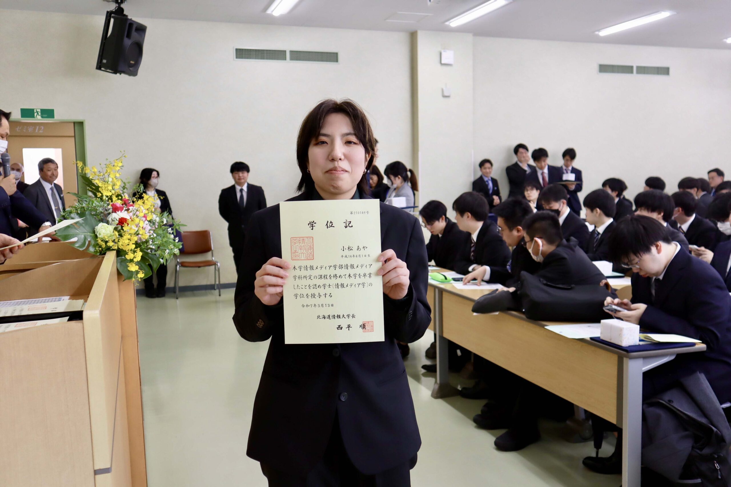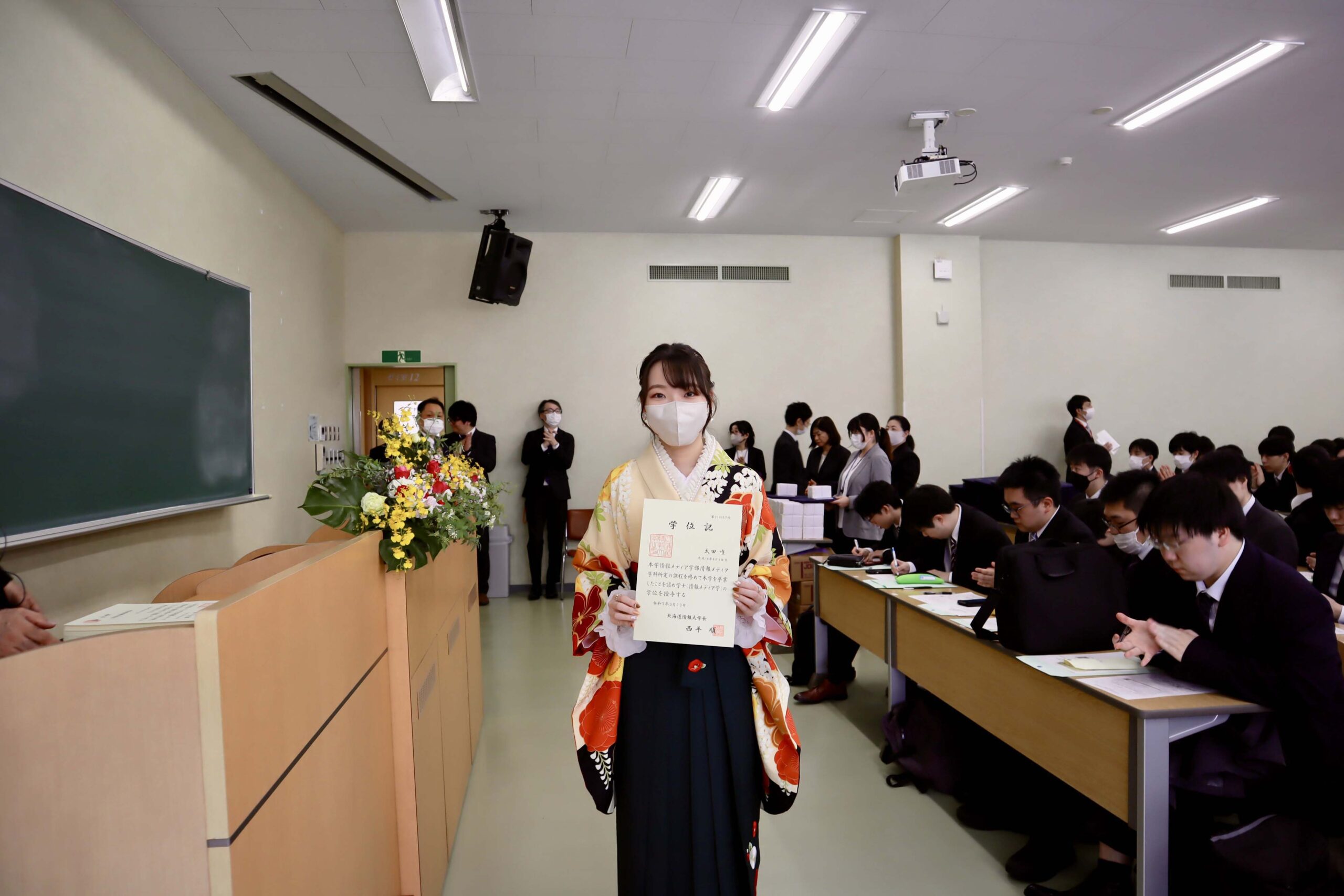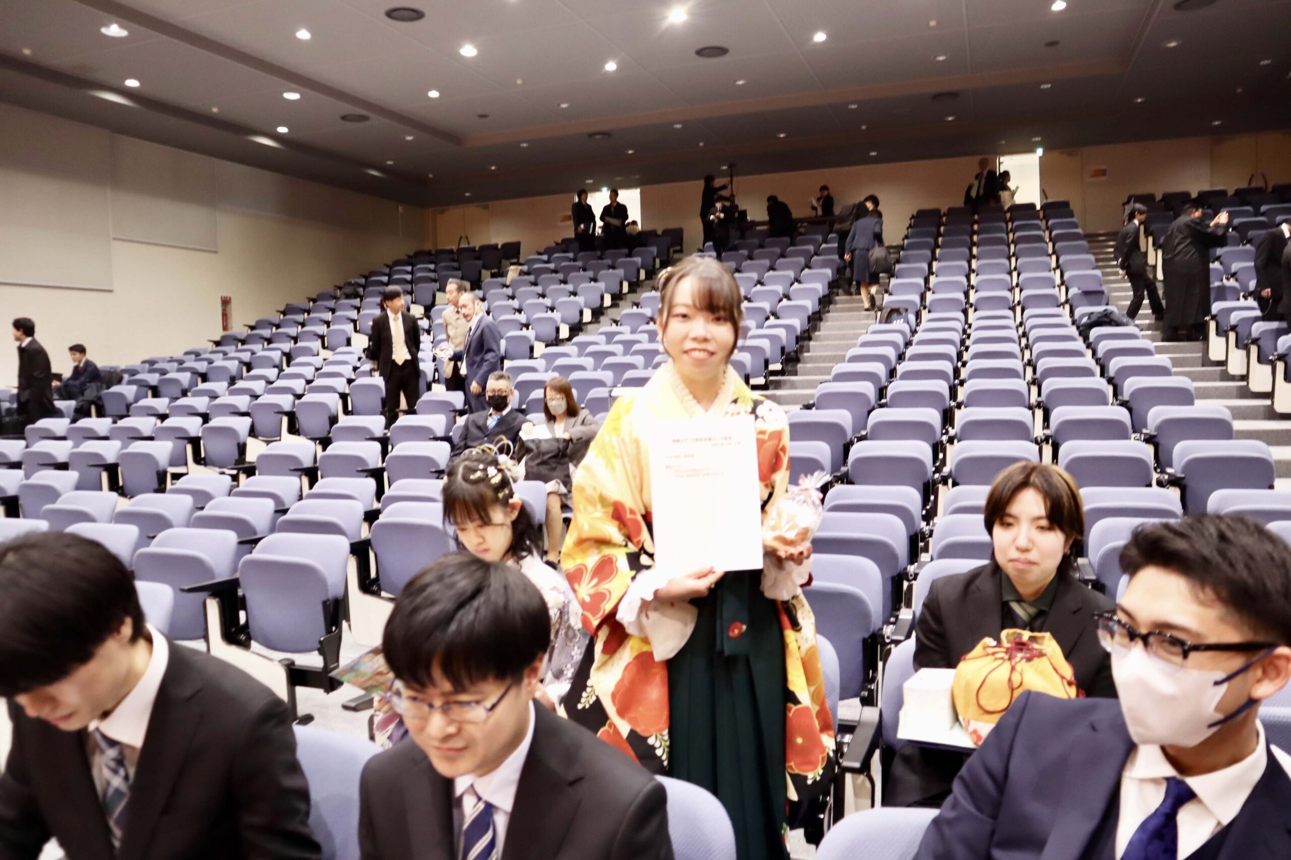 21期生たちの学位記授与式が行われました。今年度は、こまっちゃんが成績優秀者として表彰され、ゆいが講堂での代表で学位記授与を、もわが、学科別学位記授与を代表で最初に受けました。皆様、ご卒業、おめでとうございます。