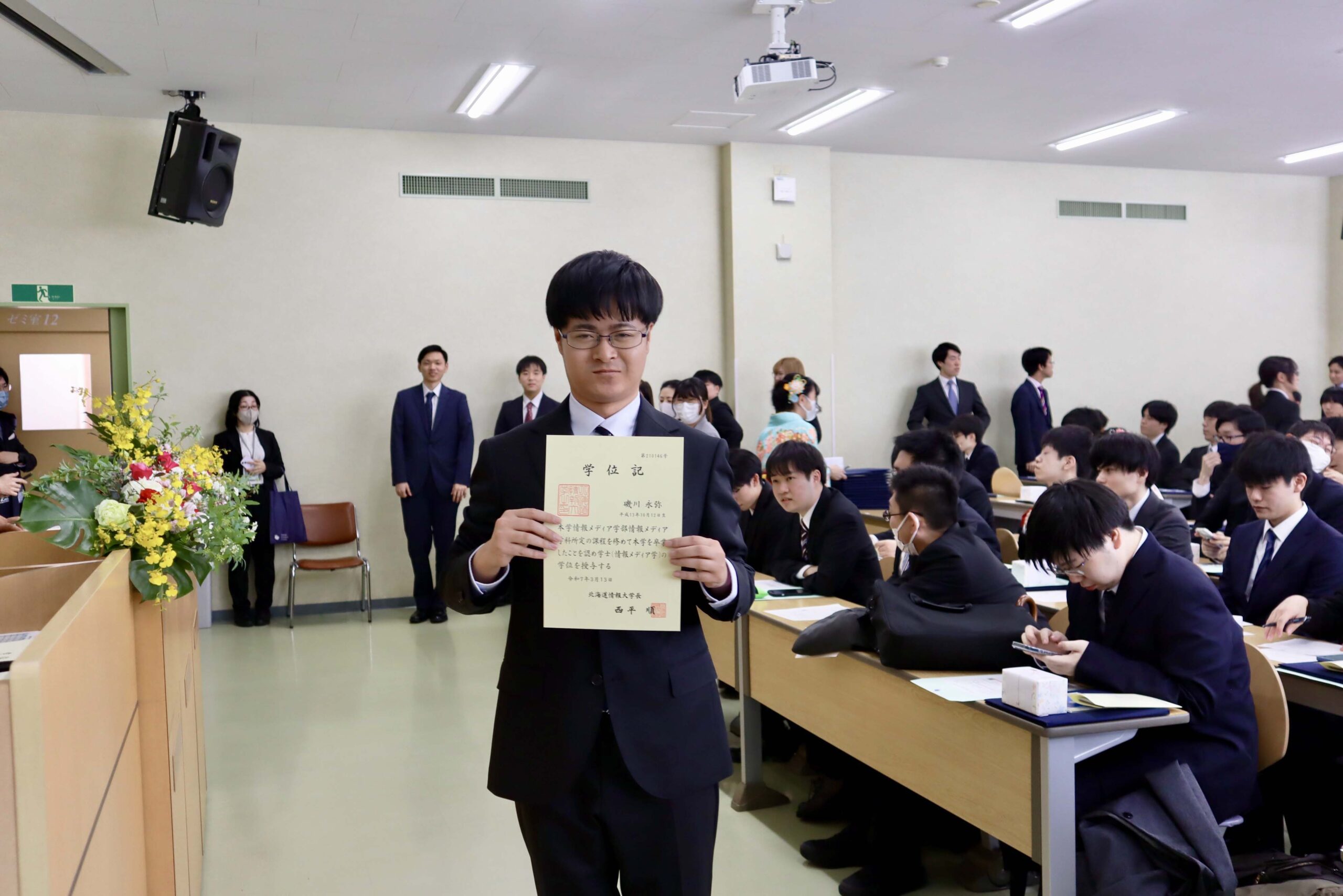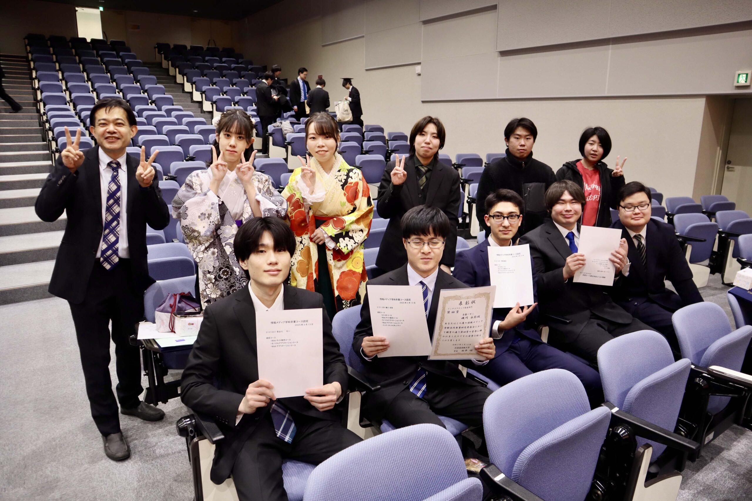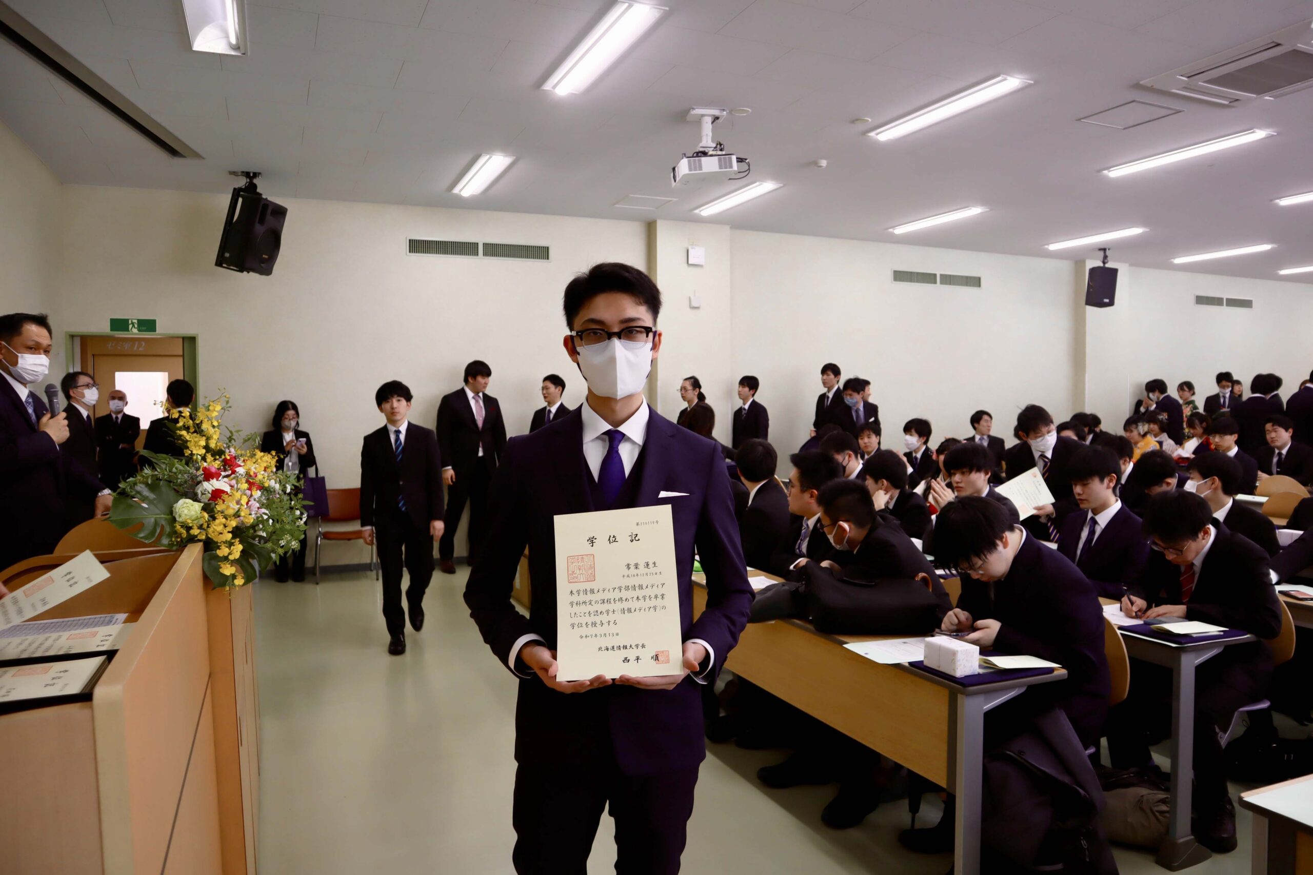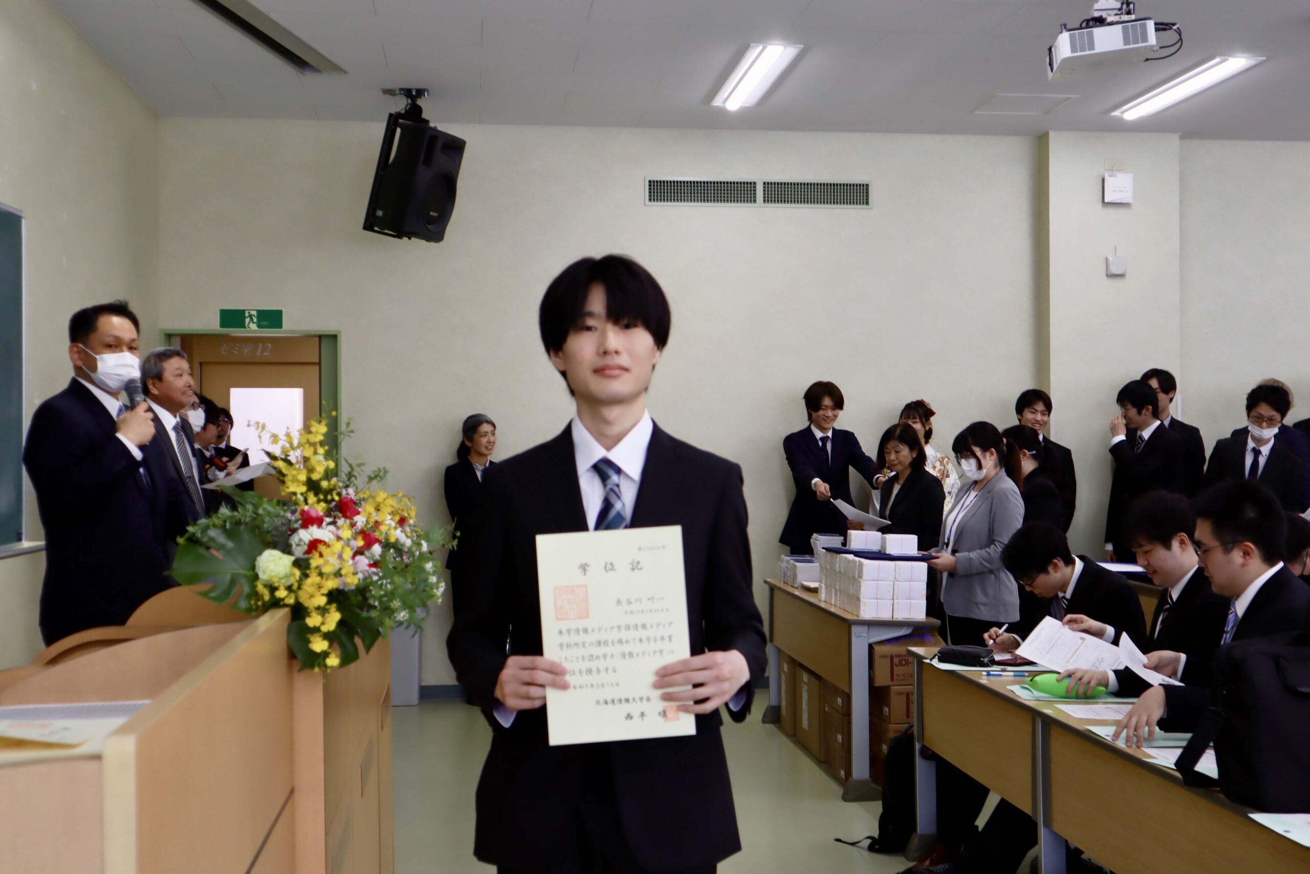 21期生たちの学位記授与式が行われました。今年度は、こまっちゃんが成績優秀者として表彰され、ゆいが講堂での代表で学位記授与を、もわが、学科別学位記授与を代表で最初に受けました。皆様、ご卒業、おめでとうございます。
