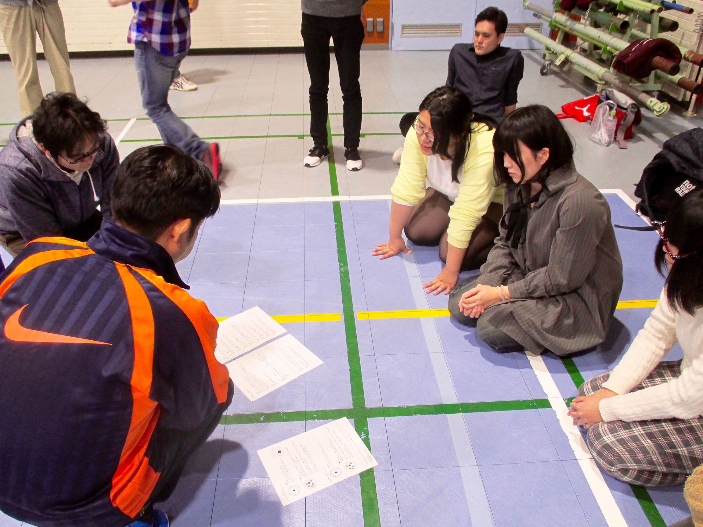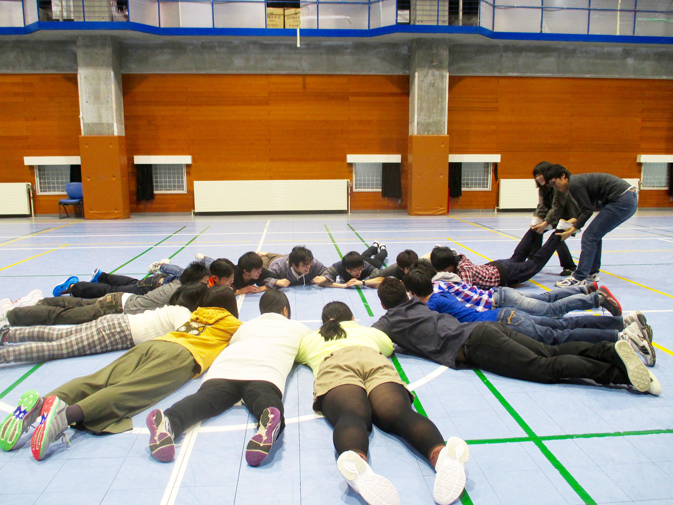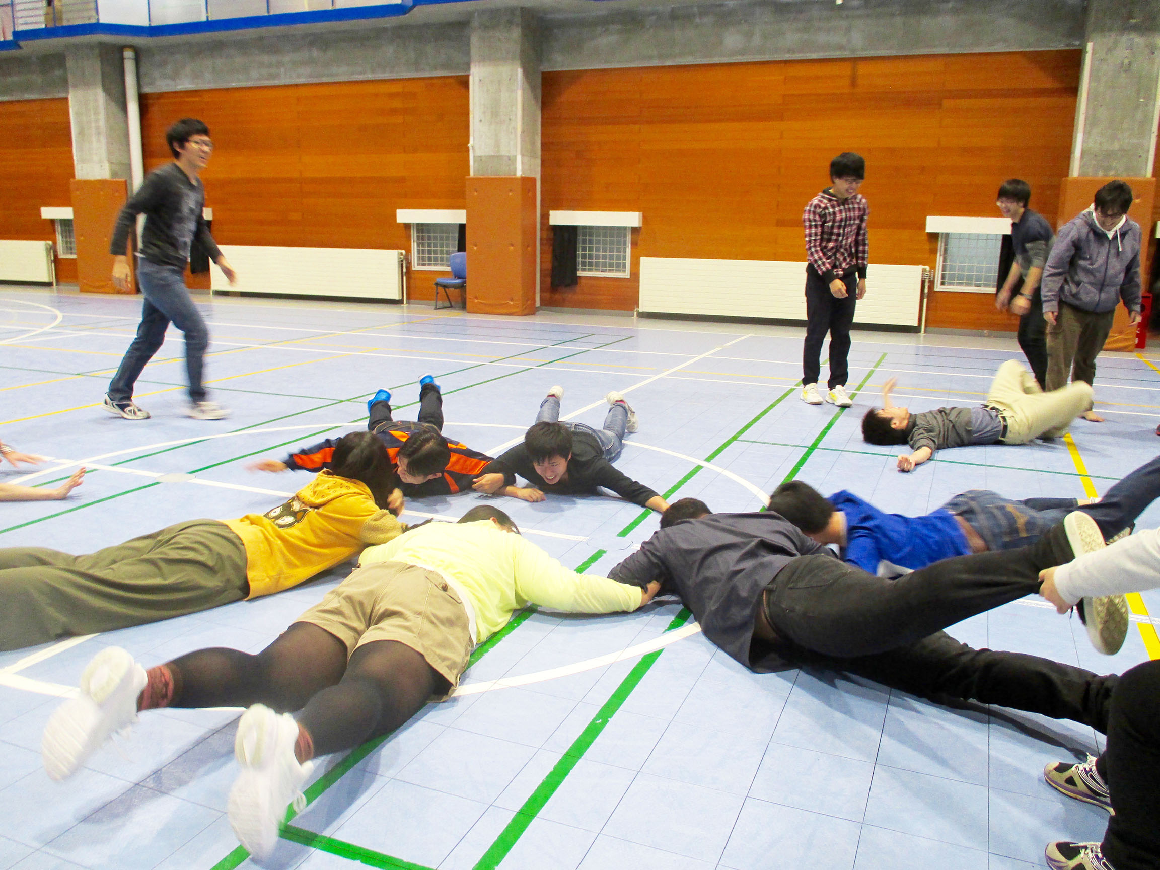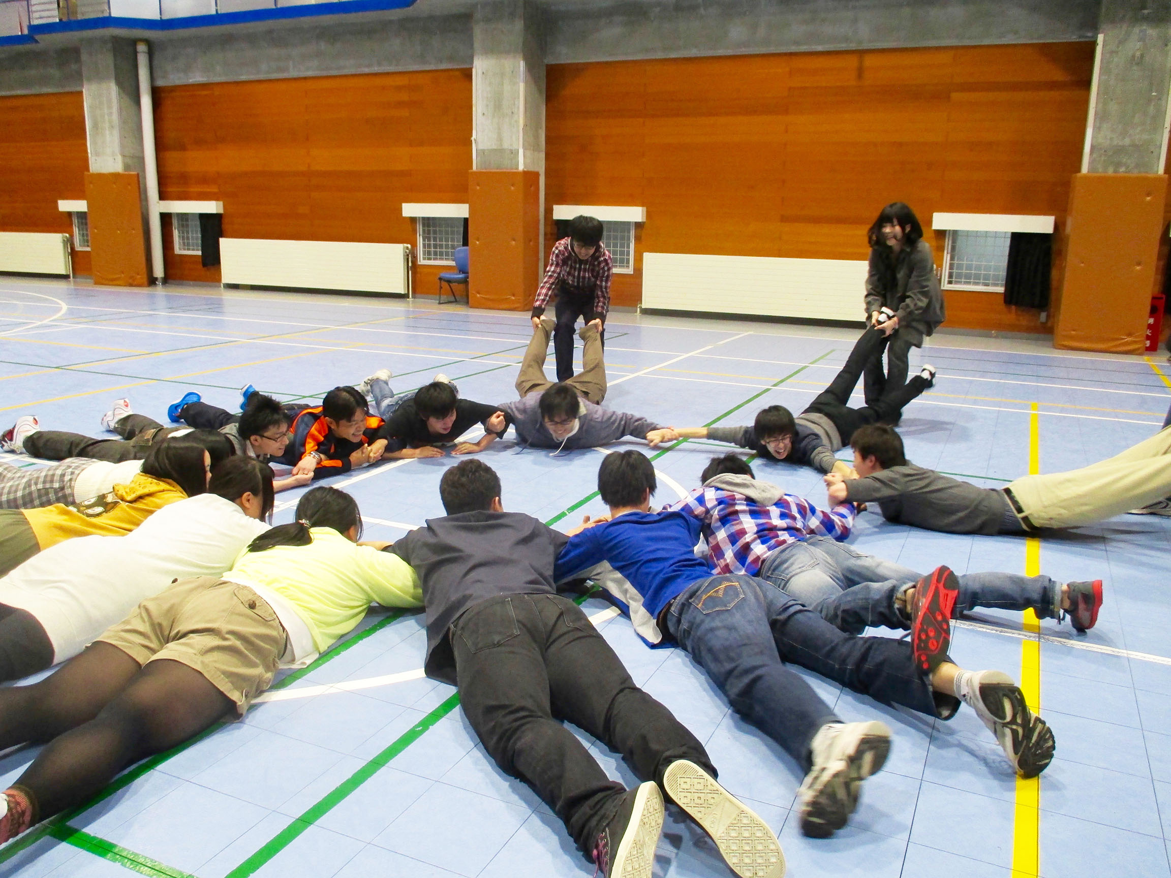大根抜きは,本州バージョン(円陣を組むパターン)と,北海道バージョン(壁にくっつくパターン)を遊び比べてみましました。