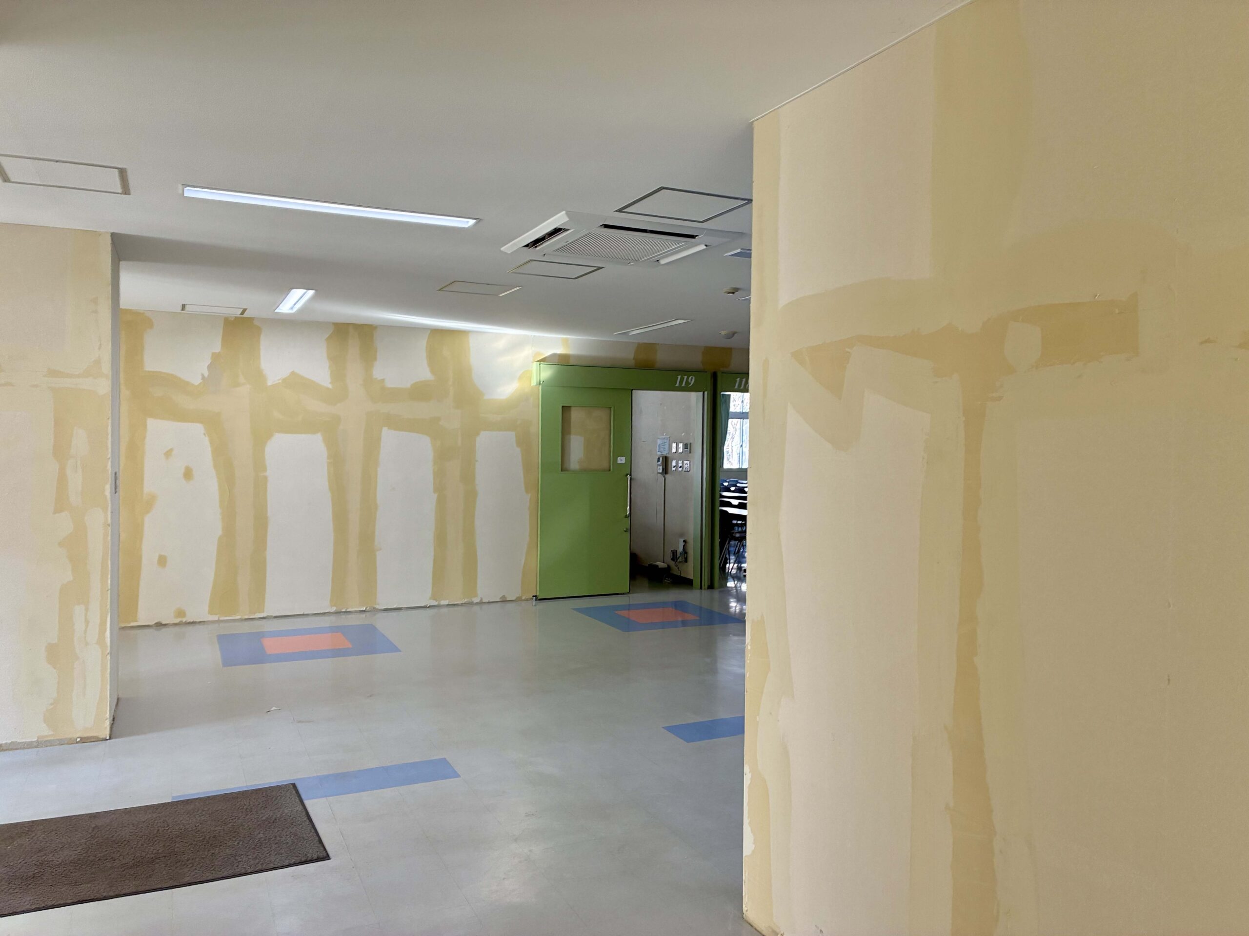 情報大学では新学期に向けて、さまざまな補修やアップデートが進んでいます。新学期に登校してきた際には、壁などがきれいになっていることに気づくと思います。