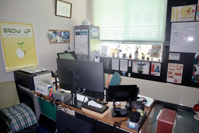作りながら学ぶゼミ。自分自身もゼミ生たちのサポートがメインですが、日々、いろいろ作っています。制作のメイン環境となる研究室は、コロナ禍から、ちょいちょいリノベしています。最近は、窓枠下すべてを、画鋲を刺したり、マグネットを貼ったりできる、ブラック領域?!にしてみました。研究のもの、というより、趣味全開になってしまった。