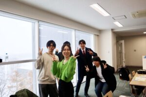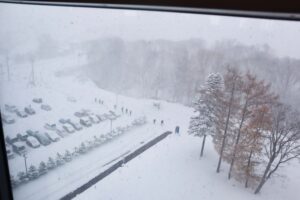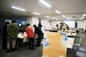 今週のゼミは、11月の大雪の中で展示会を行いました。高速バスが止まってしまい、札幌や岩見沢からの通学が困難となったメンバーもいて、全員そろっての出席・展示とはなりませんでした。それでも、大学に来られたメンバーで、できる限りの展示を行いました。また、大雪にもかかわらず、展示会を見に来てくれた2年生の皆さん、本当にありがとうございました。