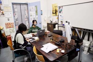 研究室では、スキーオリエンテーリング普及を目指す「ソーシャルリスニングプロジェクト」の打ち合わせをしつつ、10月1日に迫った「風景印スタンプラリー」の最終準備、そして明日開催の「新栄台秋まつり」の準備を進めていました。